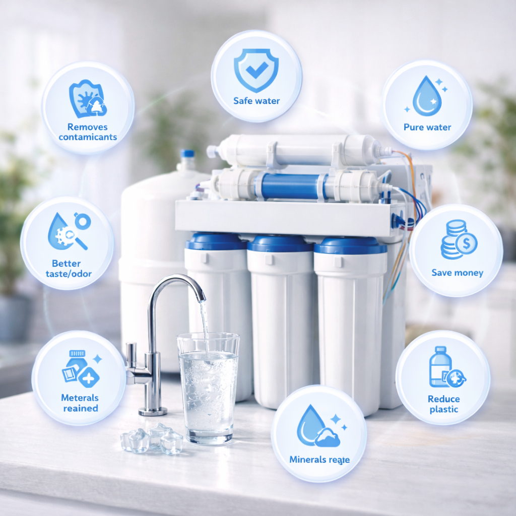 Clean water reduces the risk of water-borne diseases such as diarrhea, typhoid, and stomach infections. Children and elderly family members especially benefit from purified water.
